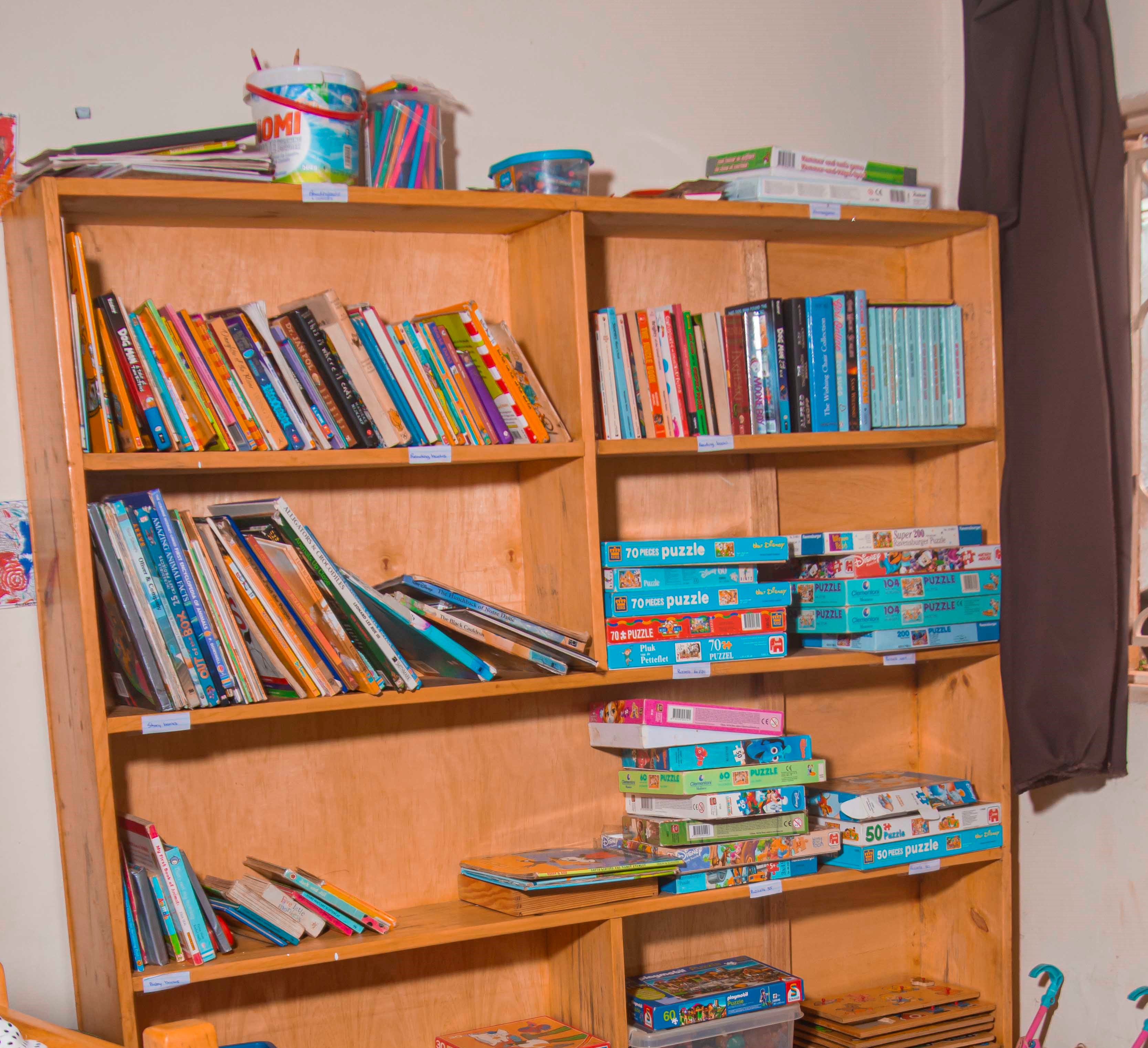En daarom zijn we een bibliotheek gestart. Per keer mogen de kinderen 1 boek uitzoeken en mee naar huis nemen. Als ze het boek hebben gelezen, brengen ze het terug en mogen ze een nieuwe meenemen. Dagelijks komen de kinderen boeken inleveren en meenemen. Jaarlijks vullen we onze bibliotheek aan, tot op heden is het een groot succes!