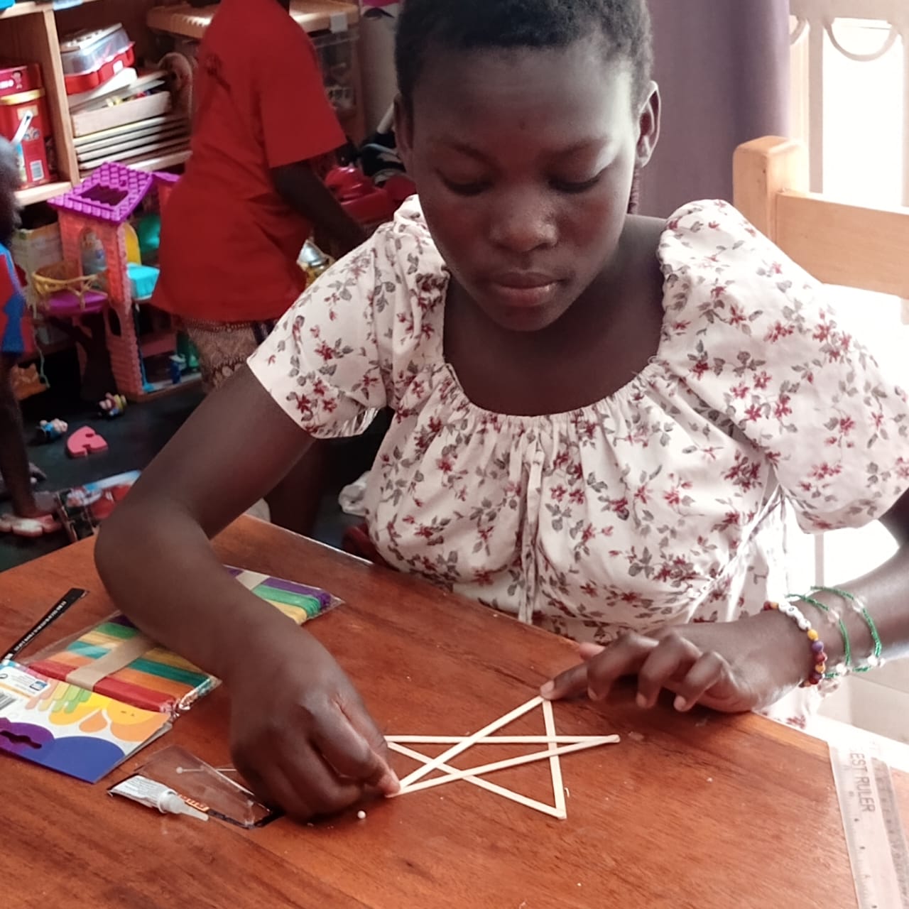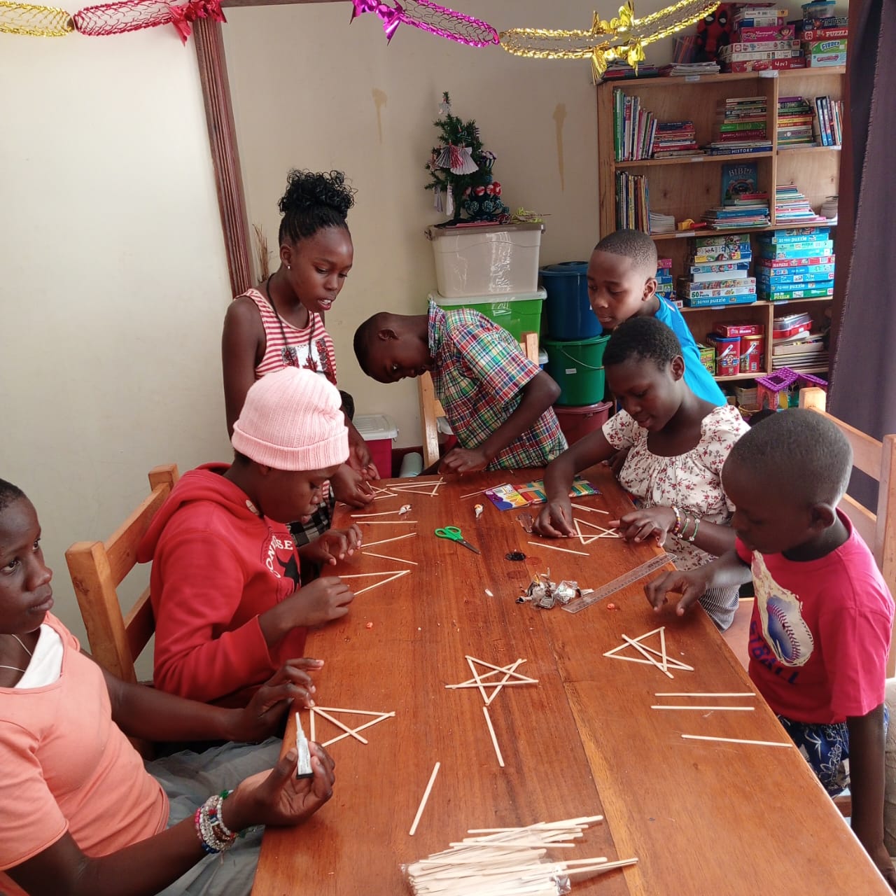 De volgende dag hebben we kerst engelen geknutseld van crepe papier gemaakt. Deze knutsel was iets ingewikkelder maar de oudere kinderen hebben de jongere kinderen goed geholpen waardoor uiteindelijk iedereen met een mooie engel naar huis ging.