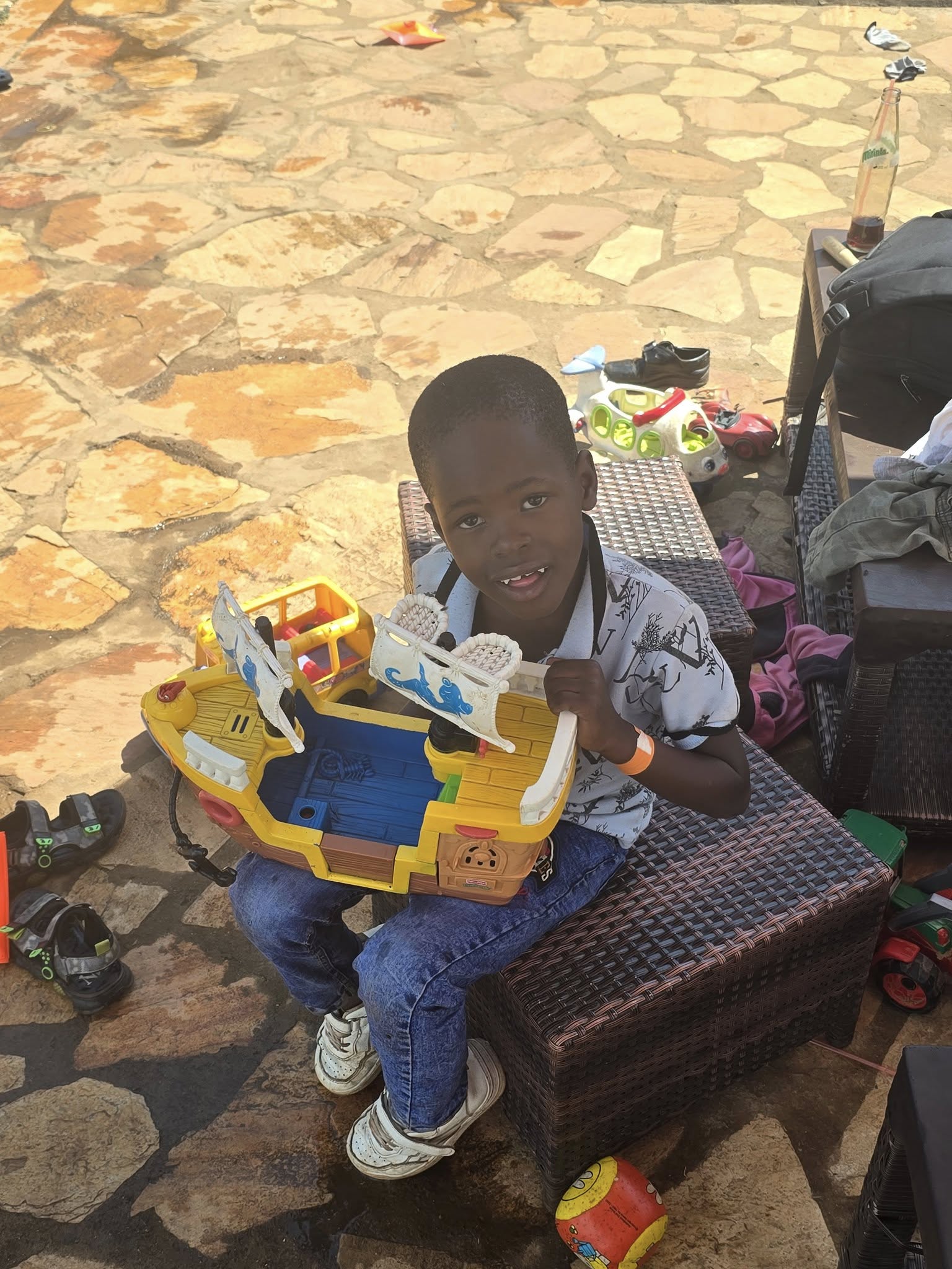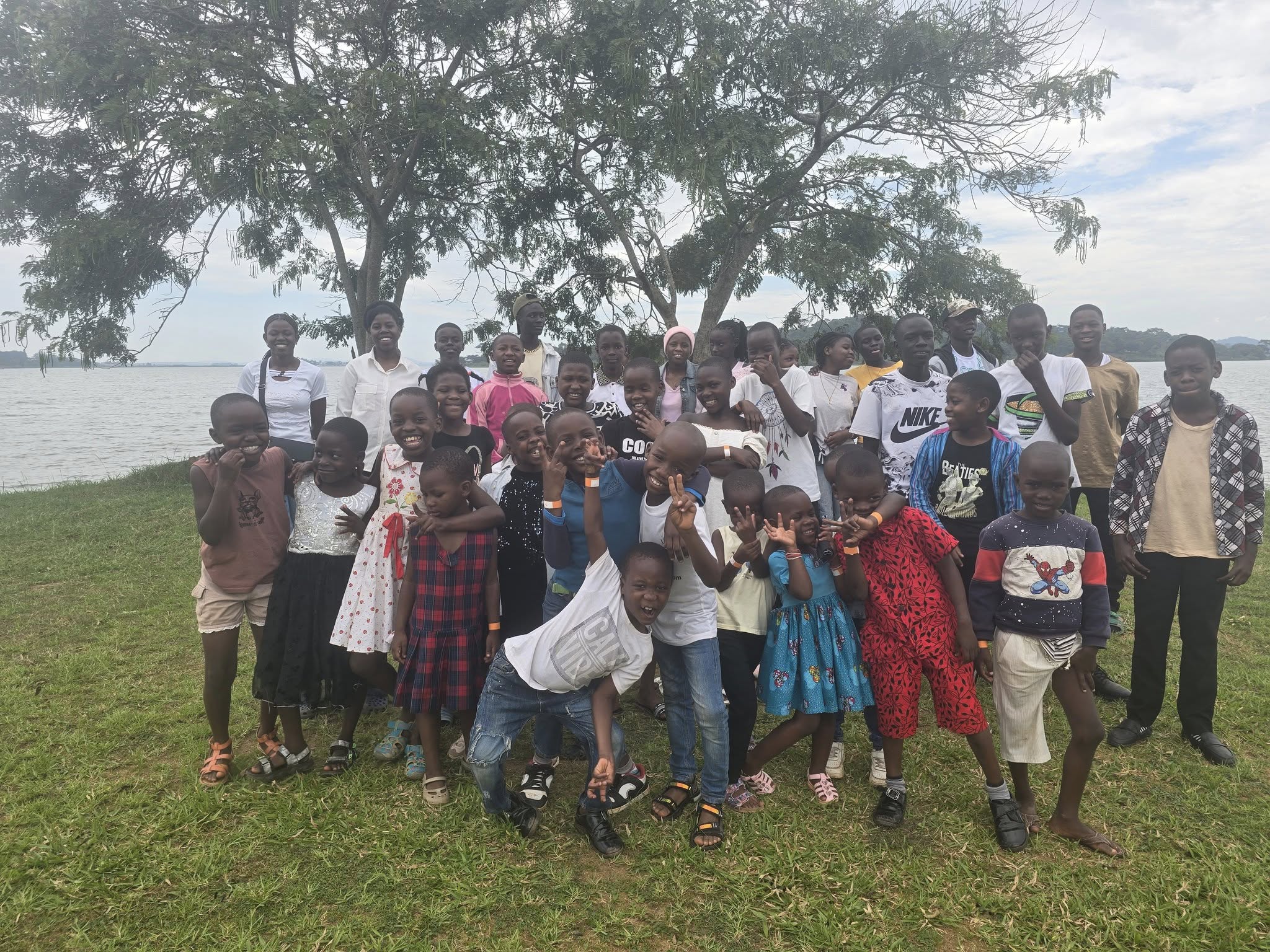 Iedereen is op tijd en de 3 busjes worden (te) volgeladen, waar plek is voor 10 kinderen zitten er nu 14, maar dat kan hier in Oeganda. Er hoeven geen veiligheidsgordels om. Speelgoed erbij en gaan. Wat een feest, er wordt volop gezongen tijdens de rit!