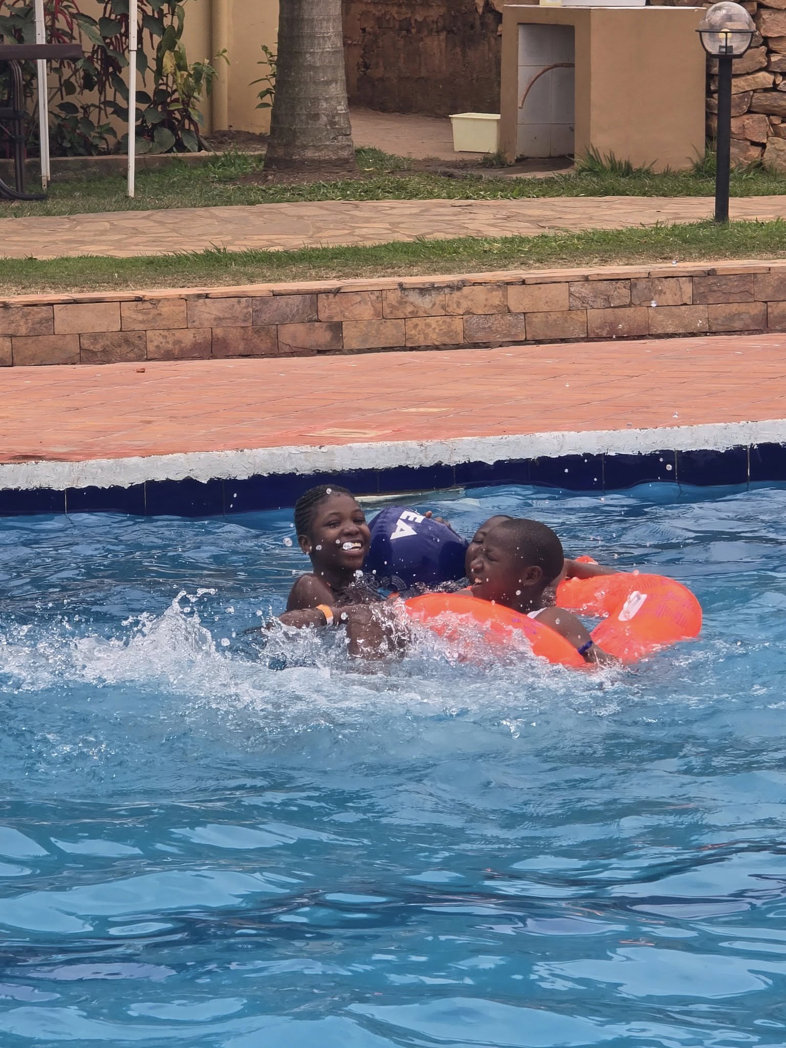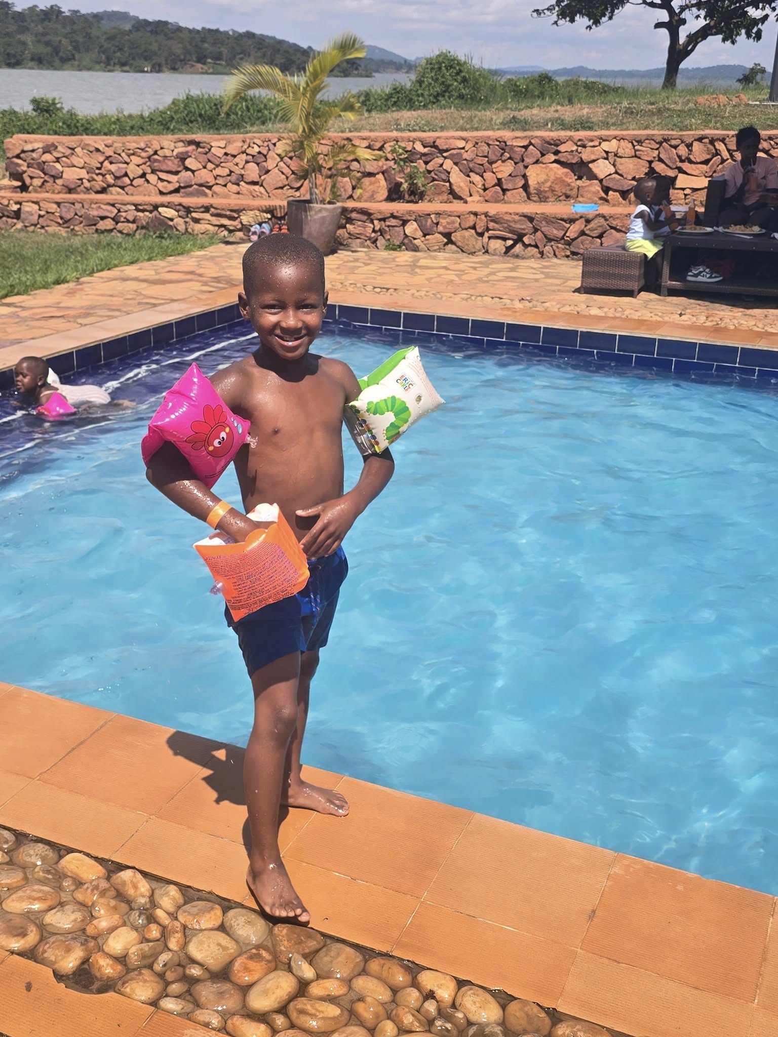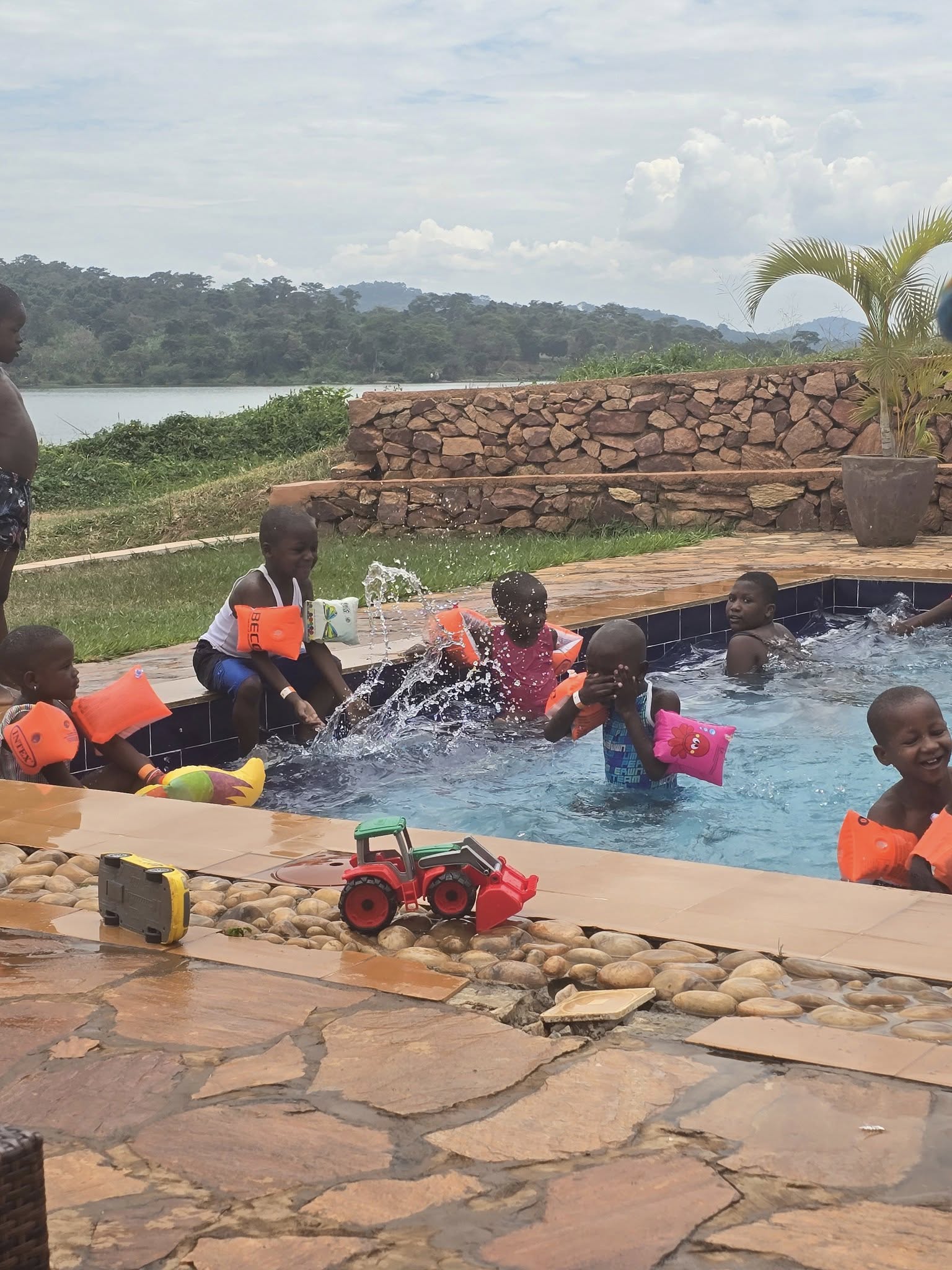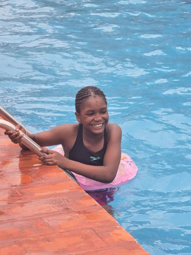 Als Anita in Oeganda is, gaat ze altijd met de kinderen zwemmen. De kinderen vinden het geweldig en kijken er het hele jaar naar uit.